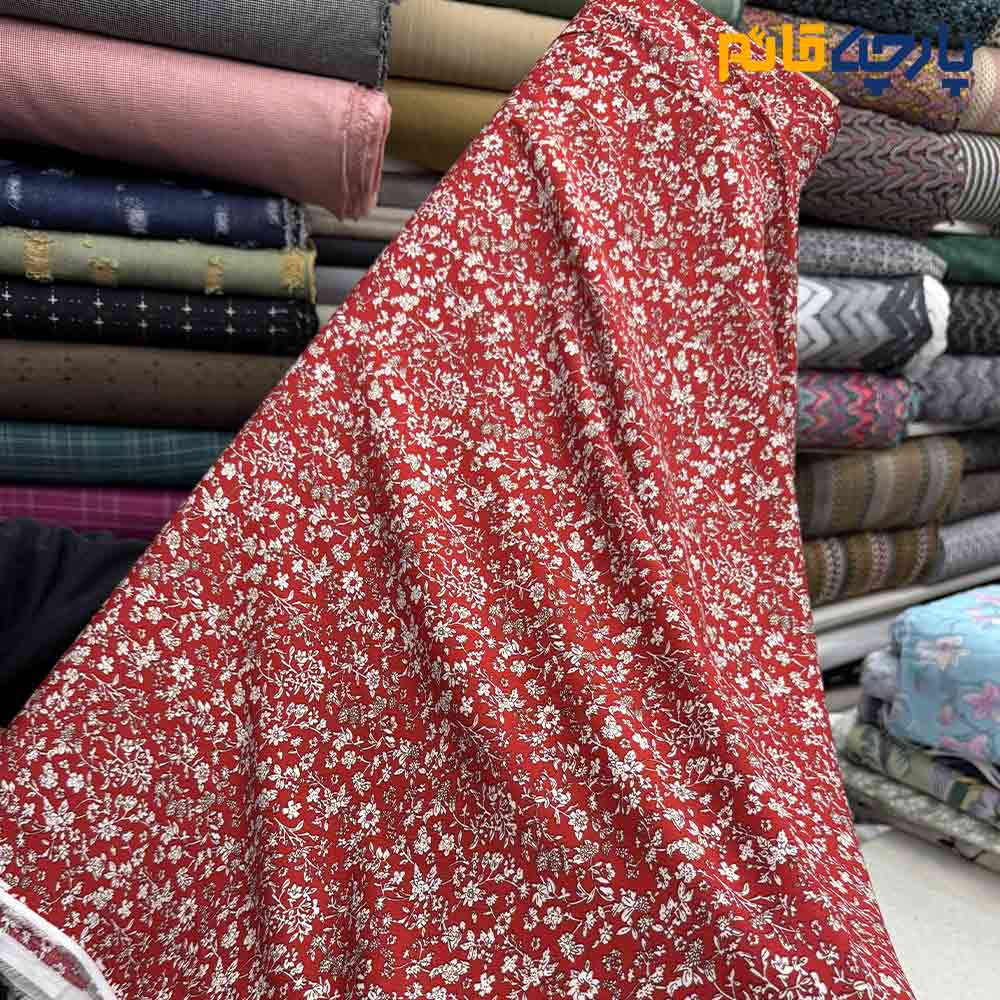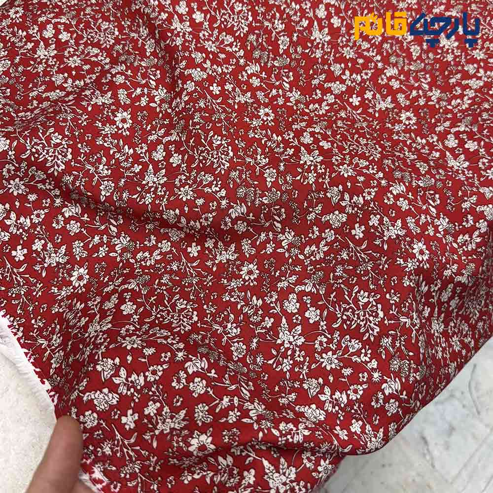پارچه بهاره و تابستانه وال طرحدار کره زمینه قرمز طرح ریز کرم کد۹۵۶۷